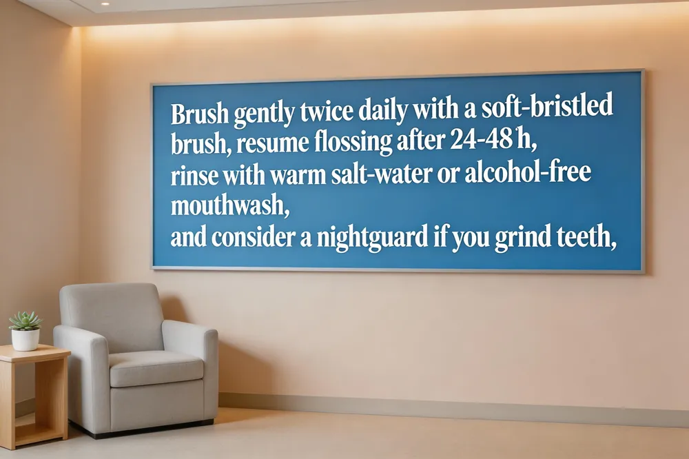 Follow‑up and lifestyle habits – Schedule a check‑up within 7‑10 days to verify fit and make bite adjustments. Avoid smoking, alcohol, and use a nightguard if you grind teeth. Maintain regular dental visits every six months, practice gentle brushing with a soft‑bristled brush, and floss carefully to ensure the crown’s long‑term durability.