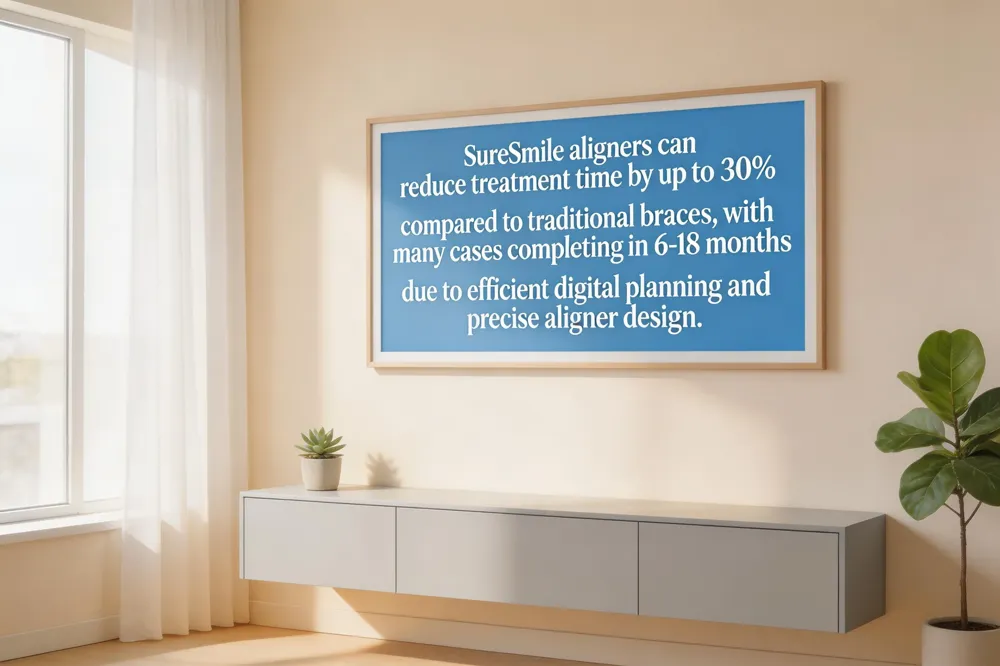 - Treatment with SureSmile can be up to 30% faster than traditional braces, with many cases completing in 6 to 18 months.