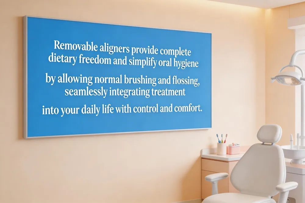 | Lifestyle Flexibility | Aligners are removable for eating, drinking, and oral hygiene. | No dietary restrictions; easier brushing and flossing compared to fixed braces. |