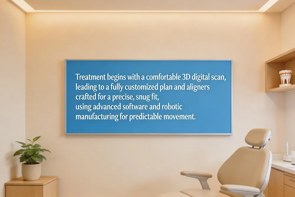 - Treatment begins with a 3D digital scan of the teeth, eliminating the need for traditional physical impressions.