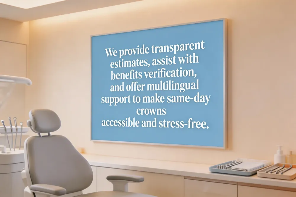 Most dental insurance plans classify same‑day crowns as a restorative service, so they are covered similarly to traditional crowns, though the exact reimbursement may vary by carrier. While the CAD/CAM technology and on‑site milling add a premium, same‑day crowns are generally not cheaper than lab‑fabricated crowns; the higher price reflects the convenience of a single visit, the use of high‑strength ceramic materials, and the specialized equipment required. At our Paterson office we provide a transparent estimate and help you verify benefits during the initial consultation. Our multilingual team—fluent in English, Spanish, and Arabic—ensures clear communication and a comfortable experience for our diverse community, minimizing language barriers and streamlining scheduling. By combining insurance guidance, clear cost comparisons, and patient‑focused service, we make same‑day crown treatment accessible and stress‑free for every patient.