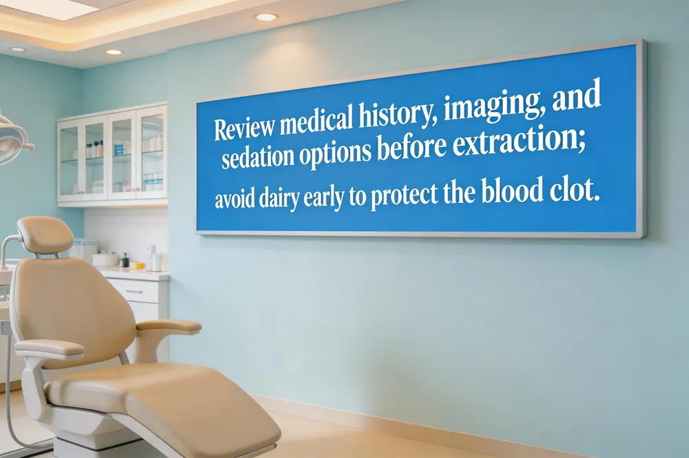 A successful extraction starts with a thorough medical‑history review and complete medication disclosure, especially blood thinners, supplements, or vitamins that may need to be paused. The dentist will also obtain diagnostic imaging—usually a dental X‑ray or CT scan—to assess the tooth’s position, root anatomy, and proximity to nerves or sinuses, which guides whether a simple or surgical extraction is required. Sedation options, ranging from nitrous oxide to oral or IV sedation, are discussed to address anxiety and ensure comfort during the procedure.