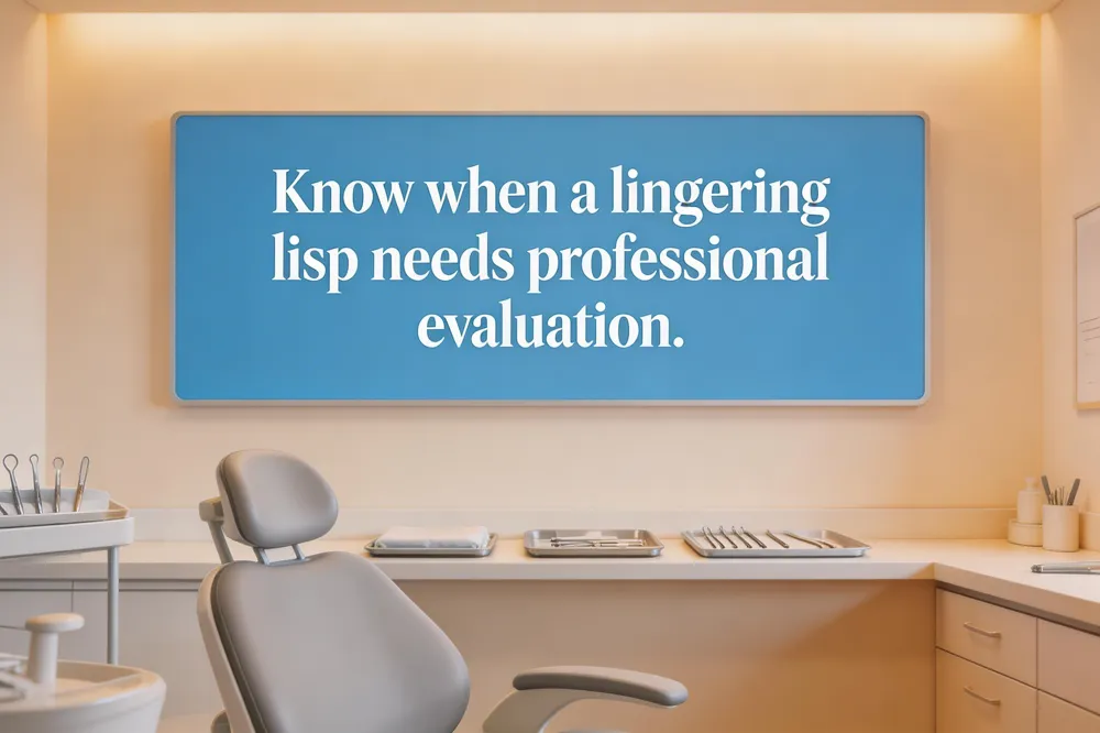 Signs that a lisp may need orthodontic attention include: (1) the inability to clear the lisp after consistent 20‑22 hour daily wear, (2) pain or ulceration on the tongue or cheeks, and (3) a sudden change in bite or alignment that could be affecting tongue placement.