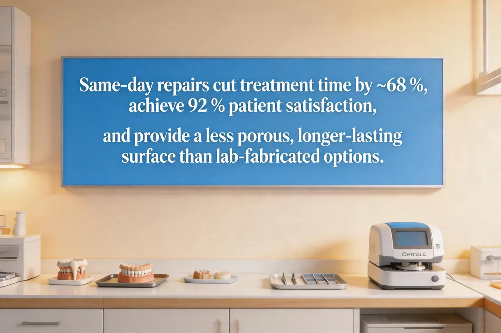 Same‑day denture repairs dramatically cut treatment time, delivering a functional prosthesis within a few hours instead of the 3‑5 days typical of external laboratory work. This rapid turnaround is made possible by on‑site [digital scanning and CAD/CAM technology](https://www.familydentalcare.com/what-types-of-dentures-are-best-for-the-elderly/), 3‑D printing, and [high‑strength acrylic](https://www.priorityemergencydental.care/locations/paterson-new-jersey/), which allow technicians to adjust, reline, or replace broken components during a single visit. Patients consistently report higher satisfaction with [same‑day denture repairs](https://mirelezdental.com/blog/discover-the-advantages-of-same-day-denture-repair-services-in-fresno-ca/); studies show a [92 % satisfaction rate](https://www.newsmiledentures.com/articles/same-day-denture-repairs) and a [68 % reduction](https://www.newsmiledentures.com/articles/same-day-denture-repairs) in total treatment time, while complication rates drop because the denture is sealed and polished immediately, minimizing bacterial contamination and sore spots. Moreover, on‑site acrylic processing—using heat‑cured, high‑impact materials—produces a [less porous surface](https://www.denturesandimplantsbr.com/repair-relines) that rivals or exceeds the longevity of lab‑fabricated repairs, providing seniors with a reliable, comfortable fit that supports nutrition, speech, and confidence without the inconvenience of multiple appointments.