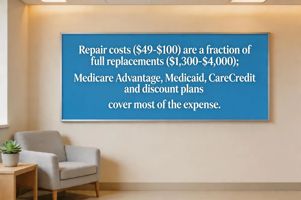 Seniors who need a same‑day partial‑denture repair can save dramatically compared with a full replacement. A minor crack or broken clasp often costs $49 – $100 for an on‑site fix, while a brand‑new denture can run $1,300 – $4,000. Insurance plans, including many Medicare Advantage policies, typically cover 50 %–80 % of repair fees after the deductible, making the out‑of‑pocket expense modest. Medicaid is accepted by several Paterson practices, most notably Dr. David M. Mayer, DMD, who provides comprehensive adult care and accommodates English, Spanish, and Arabic speakers. Other Medicaid‑friendly offices include West Broadway Dental, Jerald S. Friedman DDS, New Smile Dentistry, and Union Dental – Donald Pasquariello DMD. For fixed incomes, offices offer CareCredit, third‑party financing, and office‑wide discount plans that reduce the cost to a single visit. Quick, same‑day repairs not only restore function and confidence but also lower overall treatment costs by eliminating multiple appointments, lab fees, and temporary prostheses.