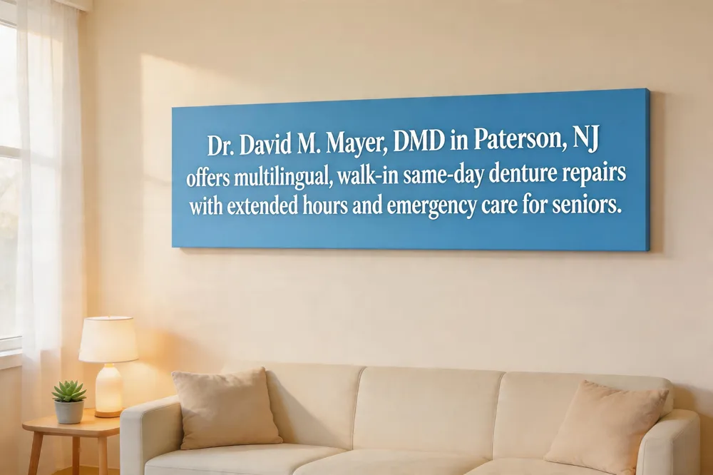 David M. Mayer, DMD, offers a full spectrum of dental services in Paterson, NJ, from routine cleanings and exams to crowns, implants, and orthodontics, with a special focus on emergency same‑day treatments that restore chewing, speaking and confidence within hours. The practice’s multilingual team — fluent in English, Spanish, and Arabic — provides clear, patient‑centered communication, ensuring seniors and diverse patients understand repair options and after‑care instructions. Extended office hours and walk‑in availability make it easy for active seniors to receive prompt care without disrupting their schedules.
