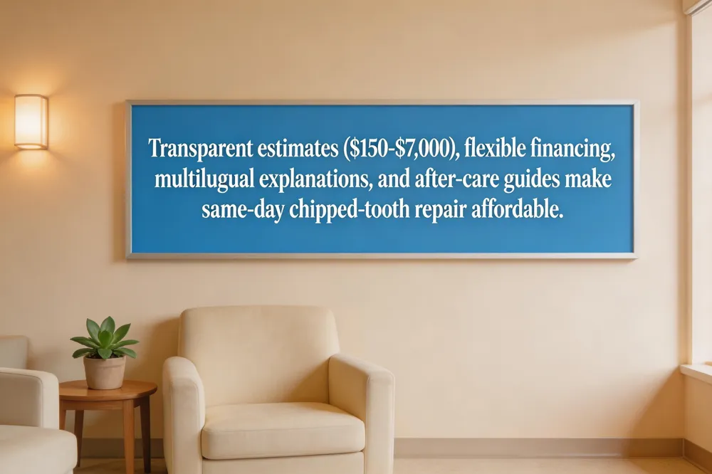 Patient education is a priority: we supply easy‑to‑read after‑care guides, demonstrate proper oral‑hygiene techniques, and advise on preventive measures such as night guards to avoid future chips. By combining transparent pricing, flexible financing, multilingual support, and thorough education, we aim to make same‑day chipped‑tooth repair accessible and stress‑free for every patient.