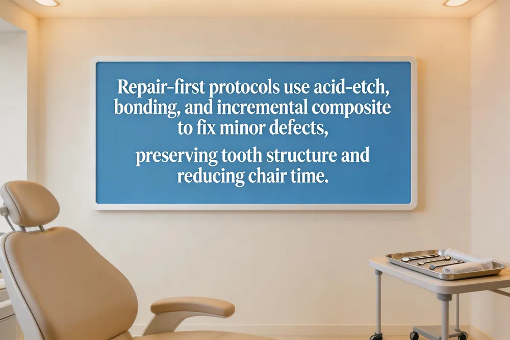 The FDI World Dental Federation endorses repair‑first strategies, recommending that dental curricula and continuing education include repair protocols. FDI highlights that repair maintains vitality, lowers patient anxiety and often eliminates the need for local anesthesia.