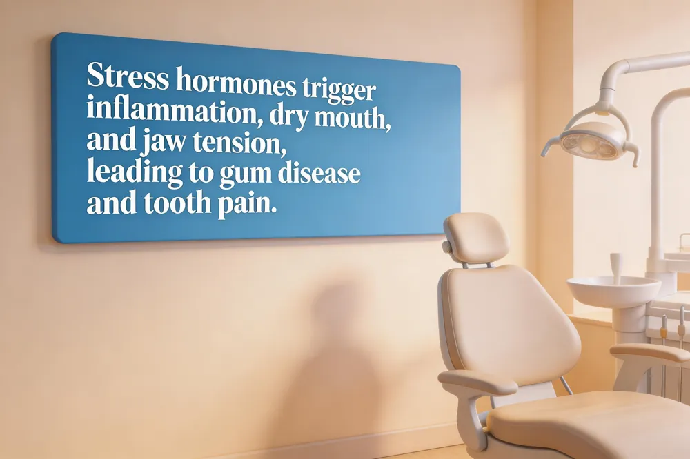 Can stress cause tooth and jaw pain? Yes. Hormonal spikes cause jaw‑muscle tension and bruxism, wearing enamel, chipping teeth, and stressing the temporomandibular joint (TMJ). The resulting muscle soreness, headaches, and clicking jaw are common.