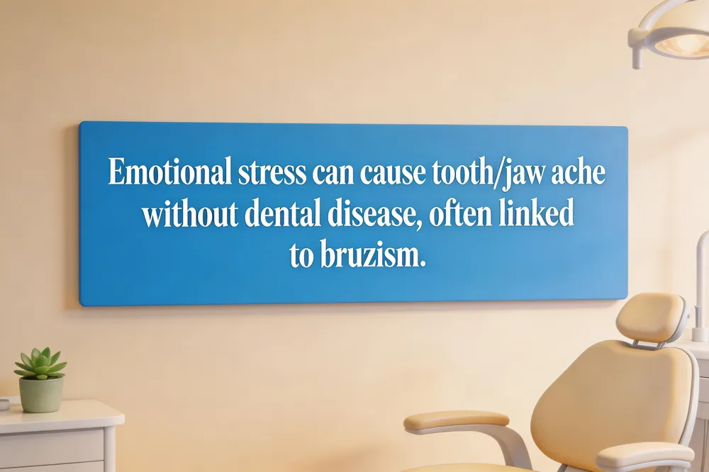 Psychosomatic tooth pain is discomfort in the teeth or jaw that cannot be linked to any identifiable dental disease; instead it originates from emotional stress, anxiety, or other psychological factors. It often appears as a dull ache, tingling, or pressure that feels much worse than the underlying stimulus. Anxiety‑driven sensations can be amplified by bruxism—unconscious clenching or grinding that creates muscle tension in the jaw, wears enamel, and heightens pain perception. Reddit users frequently report that ordinary tooth sensitivity becomes sharp or pressure‑like during anxious episodes, and many find relief through deep‑breathing, mindfulness, or therapy, while still emphasizing the need for a professional dental exam to rule out cavities, infection, or cracked teeth. Treatment begins with a thorough clinical evaluation to exclude pathology. If pain is truly psychosomatic, the focus shifts to stress‑reduction strategies (cognitive‑behavioral therapy, meditation, regular exercise) and protective measures such as a custom‑fitted night guard for bruxism. Referral to a mental‑health professional and regular dental follow‑ups provide a collaborative, compassionate approach that addresses both the emotional trigger and the oral manifestation, delivering the most effective relief.