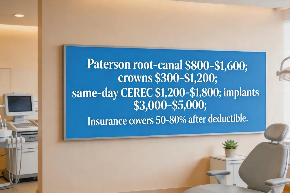 In Paterson, NJ, a root‑canal treatment typically runs $800 – $1,600, with insurance covering 50 %–80 % after deductible. After the canal, a permanent restoration—usually a crown—adds $300 – $1,200. A crown alone ranges $500 – $1,500, depending on material. When both procedures are needed, total out‑of‑pocket costs fall between $1,800 – $5,000, though many plans reimburse a significant portion.