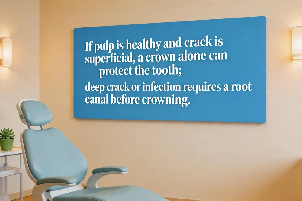 If the tooth’s pulp is healthy, a crown can be placed directly, preserving vitality and reducing treatment time. Alternatives for a cracked tooth with vital pulp include indirect or direct pulp‑capping, which aim to protect the pulp while avoiding a root canal. The dentist will evaluate crack depth, vitality tests, and X‑rays to decide whether a crown alone, a root canal, or a combination is best.